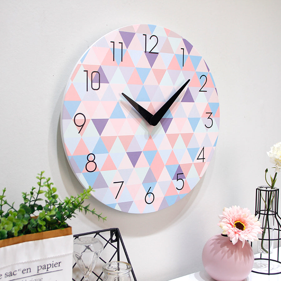 Stellen Sie sich vor, wie diese wunderschöne Design Wanduhr mit geometrischem Muster Ihrem Wohnzimmer, Schlafzimmer oder Kinderzimmer einen frischen, modernen Touch verleiht. Mit ihrem einzigartigen Dreiecksmuster in sanften Pastelltönen wie Rosa, Hellblau und Lila ist sie nicht nur ein praktischer Zeitmesser, sondern auch ein echtes Kunstwerk an Ihrer Wand. Sie suchen nach einem Accessoire, das Funktionalität und Stil perfekt kombiniert? Dann ist diese Uhr genau das Richtige für Sie. Sie fügt sich nahtlos in verschiedene Einrichtungsstile ein, von skandinavisch minimalistisch bis hin zu verspielt und modern, und schafft eine harmonische Atmosphäre, die zum Verweilen einlädt.