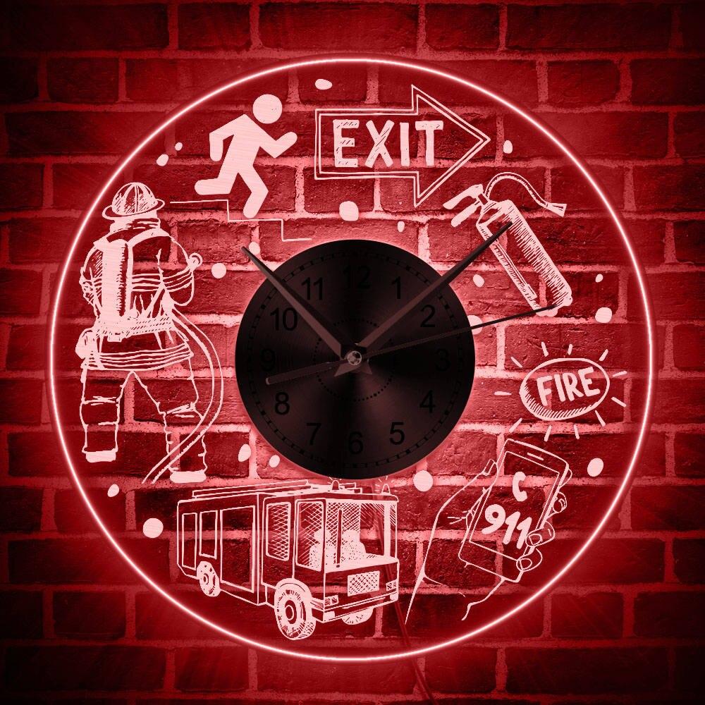 Feuerwehr Motiv Wanduhr mit LED-Licht