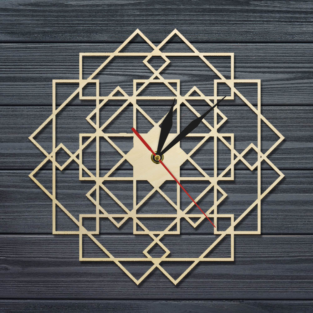 Geometrische Wanduhr Holz Mandala Design