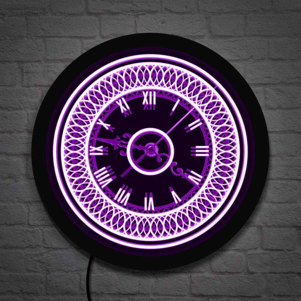 - **Lebendige LED-Beleuchtung in faszinierendem Violett:** Schafft eine einzigartige, einladende Atmosphäre in jedem Raum und macht die Uhr zu einem auffälligen Deko-Element.