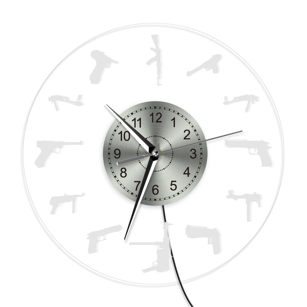 Entdecken Sie die einzigartige LED Wanduhr mit Waffen und Pistolen