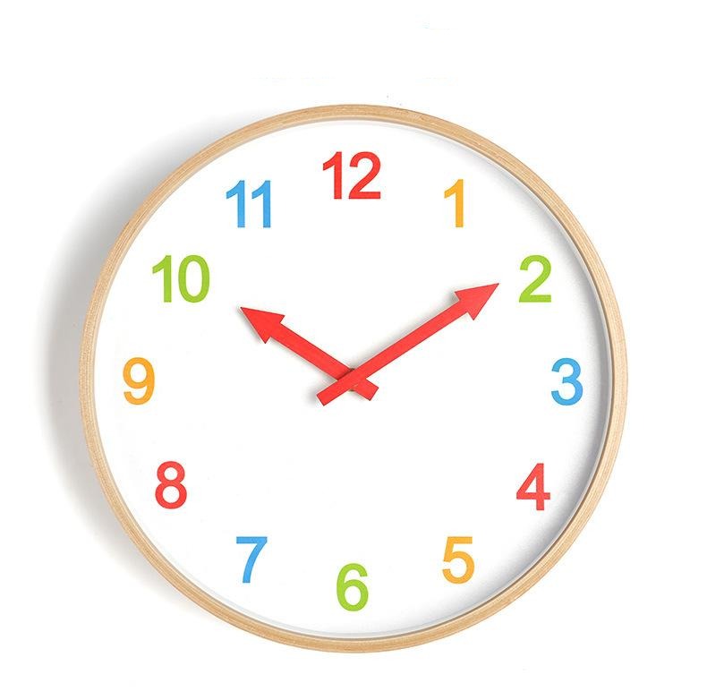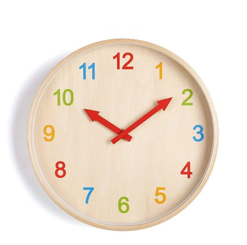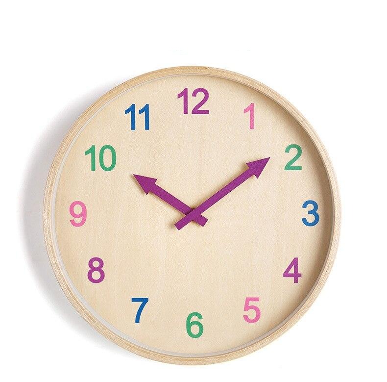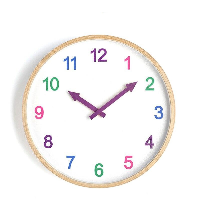 Investieren Sie in eine nachhaltige Lernuhr Holz mit bunten Zahlen