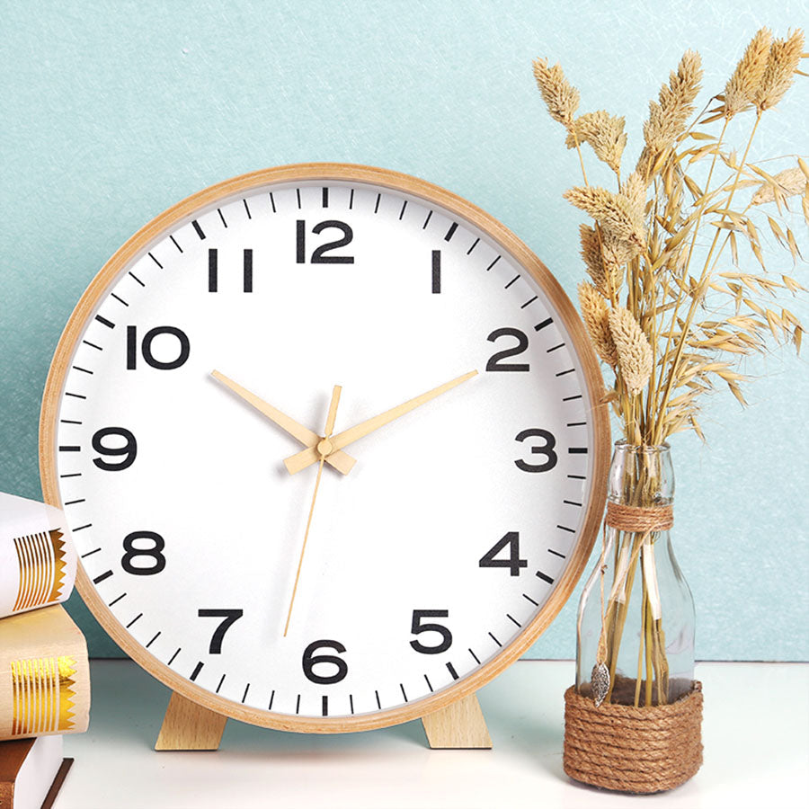 Diese Uhr wurde mit Liebe zum Detail gefertigt, wobei der Fokus auf hochwertigen, natürlichen Materialien liegt. Der Rahmen aus hellem Holz strahlt eine warme und einladende Ausstrahlung aus, während das klare, weiße Zifferblatt mit seinen deutlichen schwarzen Ziffern und den passenden Holzzeigern für optimale Ablesbarkeit sorgt. Ein weiteres Highlight ist das geräuschlose Uhrwerk. Vergessen Sie lästiges Ticken, das Ihre Konzentration stört; diese Minimalistische Tischuhr aus hellem Holz arbeitet absolut leise und ermöglicht Ihnen eine ungestörte Umgebung, sei es beim Arbeiten, Lesen oder Schlafen.