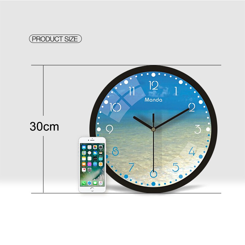 Diese Wanduhr bringt weit mehr als nur die Zeit an Ihre Wand. Die integrierte LED-Beleuchtung wurde speziell dafür entwickelt, eine angenehme und nicht störende Helligkeit zu erzeugen, die perfekt ist, um nachts die Uhrzeit abzulesen, ohne das Raumlicht einschalten zu müssen. Das harmonische Farbspiel des Zifferblatts, das an einen ruhigen Himmel oder eine Meereslandschaft erinnert, wird durch die gleichmäßige LED-Hintergrundbeleuchtung noch verstärkt und schafft einen faszinierenden visuellen Effekt. Mit ihrem präzisen Quarz-Uhrwerk arbeitet sie absolut geräuschlos, sodass Ihr Schlaf oder Ihre Konzentration nicht gestört wird. Es ist die perfekte Kombination aus ästhetischem Anspruch und höchster Funktionalität für ein modernes Wohnambiente.