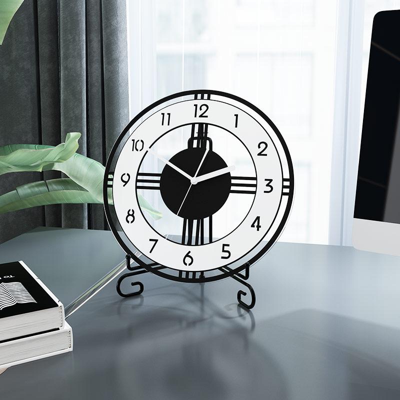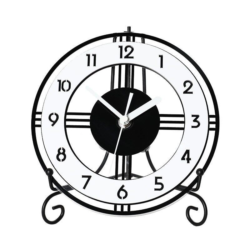 Machen Sie sich oder Ihren Lieben eine Freude mit dieser wunderschönen und praktischen modernen runden Tischuhr aus Metall. Sie ist nicht nur ein Zeitmesser, sondern ein Kunstwerk, das den Alltag verschönert.
