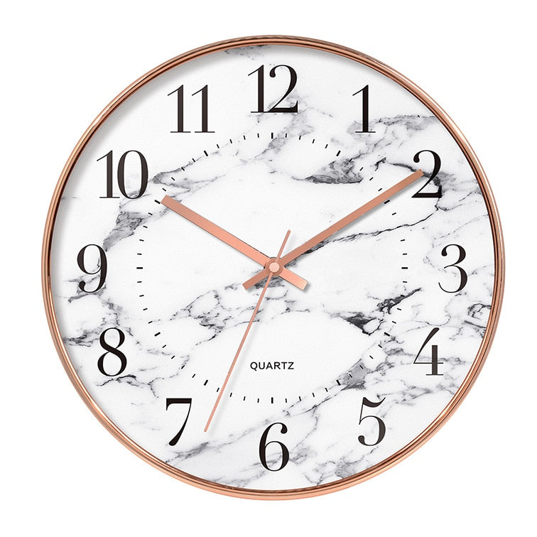 Sind Sie auf der Suche nach einer Wanduhr, die nicht nur die Zeit anzeigt, sondern auch ein echtes Design-Statement setzt? Unsere **Moderne Wanduhr Marmor-Optik mit Quarzuhrwerk** ist die perfekte Wahl, um jedem Raum einen Hauch von Raffinesse und zeitloser Schönheit zu verleihen. Das beeindruckende Zifferblatt in authentischer Marmor-Optik, kombiniert mit einem eleganten Roségold-Rahmen und passenden Zeigern, schafft einen luxuriösen Blickfang. Diese Uhr fügt sich nahtlos in moderne, skandinavische oder minimalistische Einrichtungsstile ein und wertet Ihr Wohnzimmer, Schlafzimmer, Büro oder den Flur sofort auf. Stellen Sie sich vor, wie dieses Schmuckstück Ihre Wände belebt und Ihren Gästen ins Auge fällt – ein Ausdruck Ihres erlesenen Geschmacks.