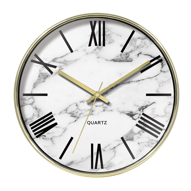 Verleihen Sie Ihrem Zuhause Eleganz mit dieser **Modernen Wanduhr Marmor-Optik mit Quarzuhrwerk**