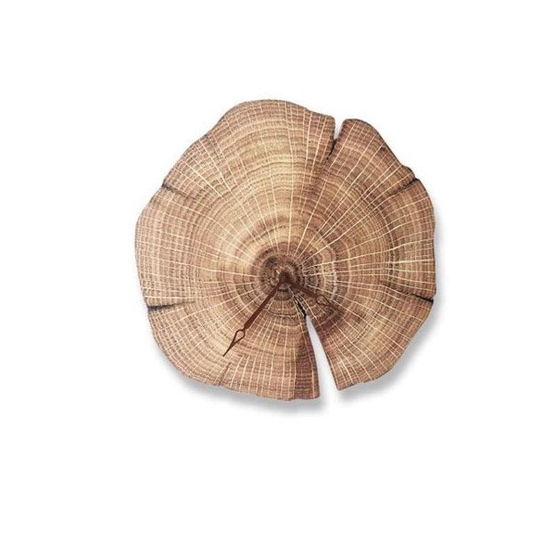 Jede unserer Uhren beginnt mit einer sorgfältig ausgewählten Baumscheibe, die ihren natürlichen Wuchs und ihre einzigartigen Jahresringe beibehält – ein Zeugnis der Zeit und der Natur. Der authentische Rindenrand wird bewusst erhalten, um den rustikalen Charme zu unterstreichen und die ursprüngliche Form des Baumes zu würdigen. Wir achten darauf, dass das Holz fachgerecht behandelt und konserviert wird, um seine Schönheit und Langlebigkeit zu gewährleisten, sodass Sie lange Freude an Ihrer Uhr haben. Im Zentrum der Scheibe sitzt ein präzises und leises Uhrwerk, das von schlichten, eleganten weißen Zeigern ergänzt wird. Diese moderne Note bildet einen reizvollen und gut sichtbaren Kontrast zum organischen Material und sorgt für klare Lesbarkeit. So entsteht eine perfekte Harmonie aus Natürlichkeit, Ästhetik und Funktionalität.