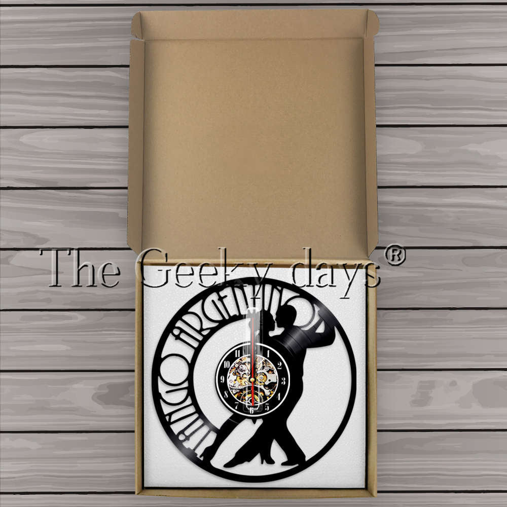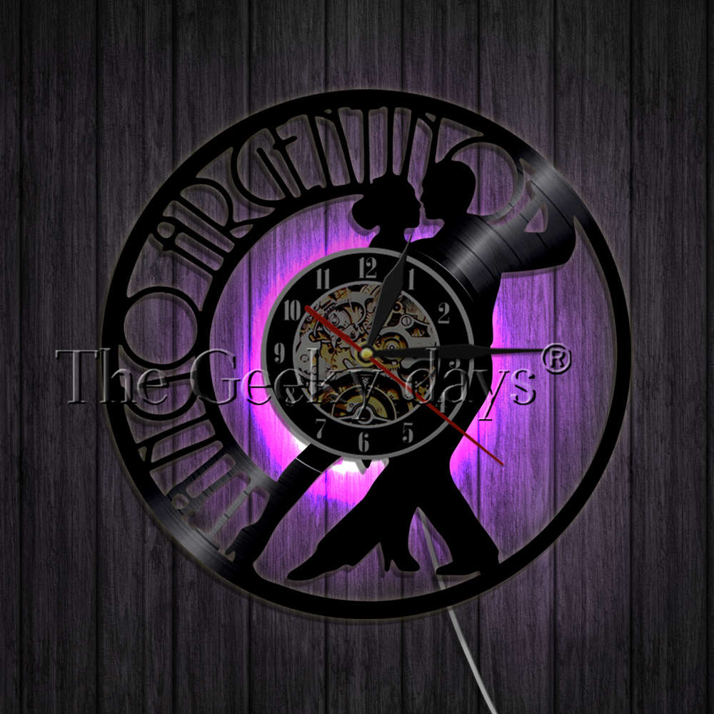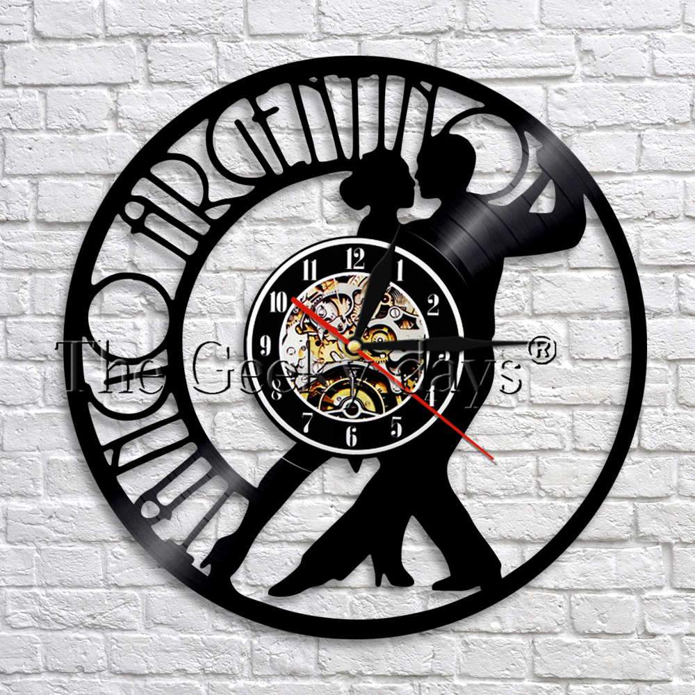 Verleihen Sie Ihrem Zuhause Leidenschaft mit unserer Schallplattenuhr mit Tango Tänzer Motiv