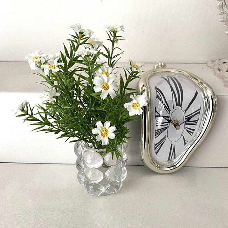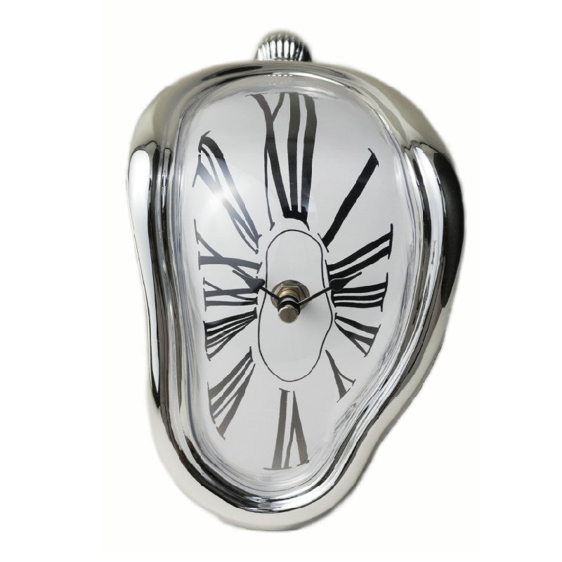 Mehr als nur eine Möglichkeit, die Uhrzeit abzulesen, ist unsere Schmelzende Uhr im Stil von Dalí ein Ausdruck Ihrer Persönlichkeit und Ihres Geschmacks. Sie verwandelt eine gewöhnliche Oberfläche in eine Bühne für ein surrealistisches Spektakel. Jeder Blick auf diese Uhr wird Sie dazu anregen, über die Natur der Zeit, die Erinnerung und die Kunst nachzudenken. Das glänzende, silberfarbene Gehäuse reflektiert das Licht wunderschön und verstärkt den fließenden Effekt, während die klaren römischen Ziffern einen klassischen Kontrast zum avantgardistischen Design bilden. Ob im Büro, im Wohnzimmer oder im Schlafzimmer, diese Uhr ist ein sofortiger Blickfang und wird garantiert Gespräche anstoßen. Sie zeigt nicht nur die Zeit an, sondern feiert sie auf eine Weise, die sowohl poetisch als auch provokant ist.