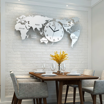 Verleihen Sie Ihrem Raum einen Hauch von Eleganz mit unserer Silbernen Weltkarten-Wanduhr aus Acryl