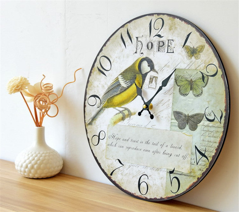 Machen Sie die Vintage Wanduhr mit Vogel und Schmetterling zu Ihrem neuen Lieblingsstück