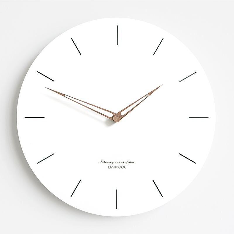 Diese einzigartige Wanduhr aus Holz weiß gebleicht wurde mit Bedacht entworfen, um nicht nur die Zeit präzise anzuzeigen, sondern auch eine Atmosphäre der Gelassenheit und des Wohlgefühls zu schaffen. Das helle, gebleichte Zifferblatt aus Holz bietet eine frische und luftige Basis, die die warmen, natürlichen Holzzeiger wunderbar zur Geltung bringt. Die klaren, minimalistischen Zahlen sind dank ihres Kontrastes zum Hintergrund leicht ablesbar und tragen zum unaufdringlichen Charme der Uhr bei. Ob im Wohnzimmer, Schlafzimmer, in der Küche oder im Büro – diese Uhr wird zum stilvollen Blickfang, der gleichzeitig eine funktionale Rolle erfüllt. Ein besonderes Detail ist der feine Schriftzug "I change your sense of time EMITDOOG", der einen nachdenklichen Touch hinzufügt und zum Innehalten anregt. Und das Beste: Dank ihres geräuschlosen Uhrwerks können Sie absolute Ruhe genießen, ohne störendes Ticken.