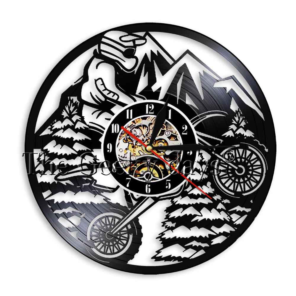 Sind Sie ein echter Adrenalin-Junkie, ein Motorrad-Fan durch und durch oder auf der Suche nach einem einzigartigen Geschenk, das Herzen höherschlagen lässt? Dann ist unsere atemberaubende Wanduhr aus Schallplatte mit Motorrad-Motiv genau das Richtige für Sie! Jede dieser Uhren ist ein kunstvolles Meisterwerk, das aus einer recycelten Vinyl-Schallplatte geschnitten wird. Stellen Sie sich vor, wie der Geist der Freiheit und des ungebändigten Offroad-Abenteuers an Ihrer Wand zum Leben erwacht. Dieses besondere Stück ist mehr als nur eine Uhr; es ist eine Hommage an die Leidenschaft für extreme Mountainbike-Action und die majestätische Schönheit der Natur, die jeden Raum in eine persönliche Galerie verwandelt.