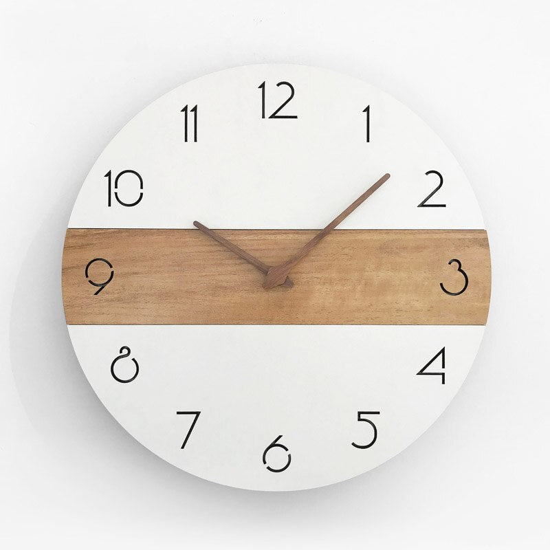 Sie suchen nach dem perfekten Akzent, um Ihrem Zuhause Wärme und minimalistische Eleganz zu verleihen? Unsere exklusive Wanduhr Holz im skandinavischen Design rund ist genau das Richtige für Sie! Gefertigt aus hellem, natürlichem Holz mit einer wunderschön sichtbaren Maserung, verkörpert diese Uhr die Essenz des nordischen Wohnstils. Ihr klares, schnörkelloses Design fügt sich nahtlos in moderne, aber auch in gemütliche Interieurs ein. Die auffällige, größere '12' aus dunklerem Holz, kombiniert mit den filigranen Zeigern und den schlichten schwarzen Ziffern, schafft einen subtilen Kontrast und macht sie zu einem echten Blickfang. Sie ist nicht nur ein präziser Zeitmesser, sondern auch ein stilvolles Kunstobjekt, das Ruhe und Harmonie in jeden Raum bringt, sei es im Wohnzimmer, Schlafzimmer oder Büro.