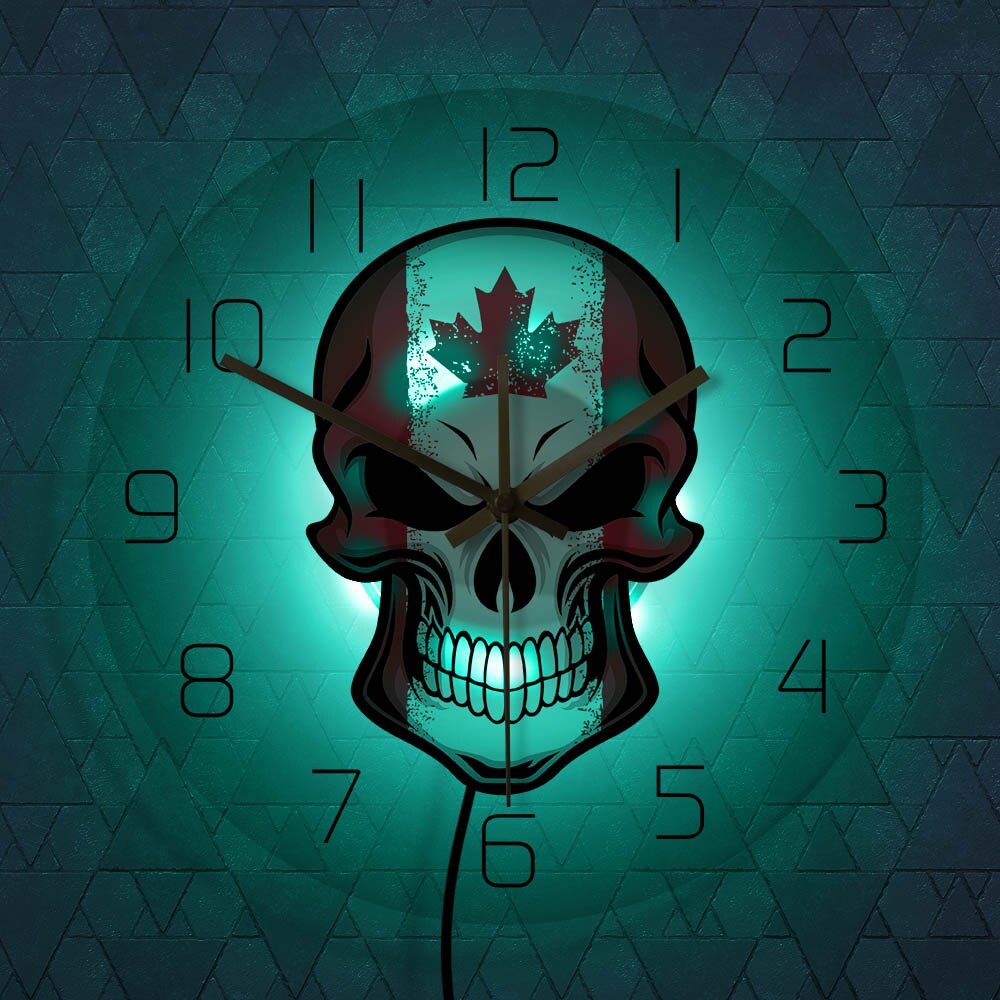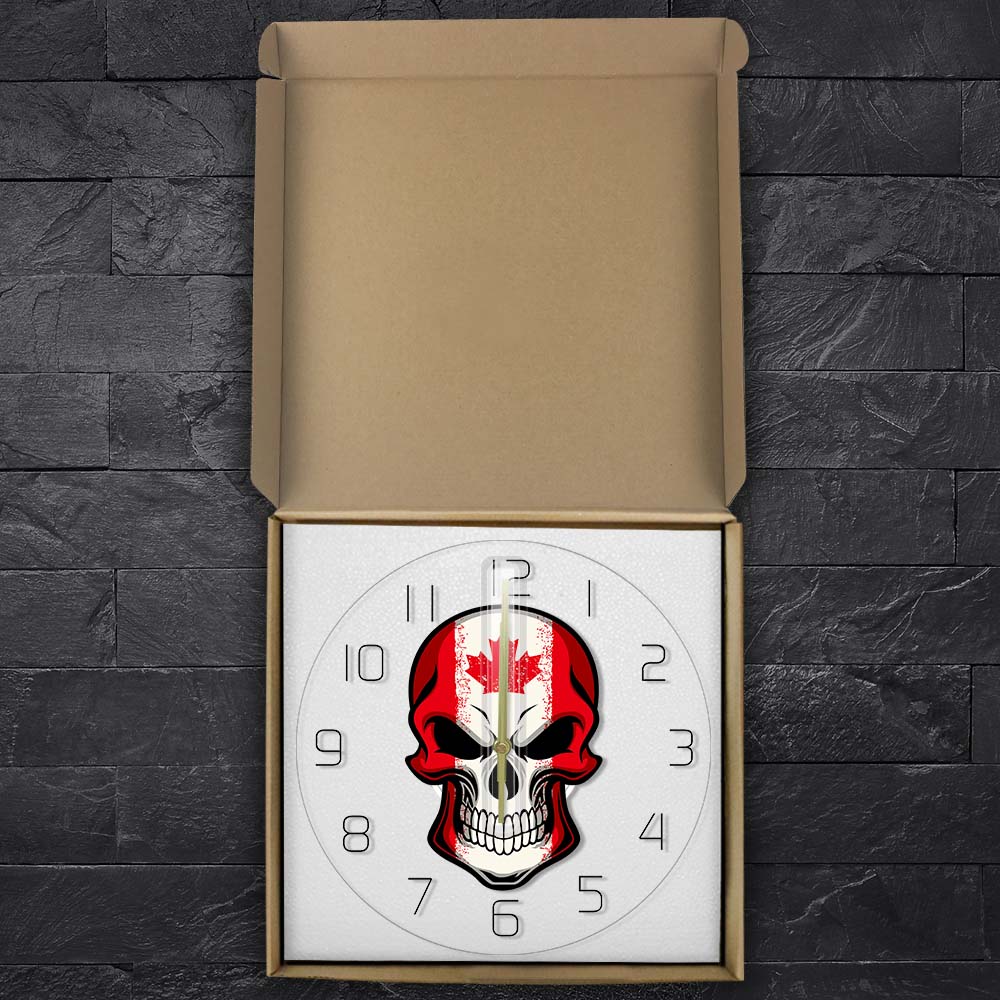 Die ultimative Wanduhr Totenkopf mit Kanada-Flagge für Ihren individuellen Stil